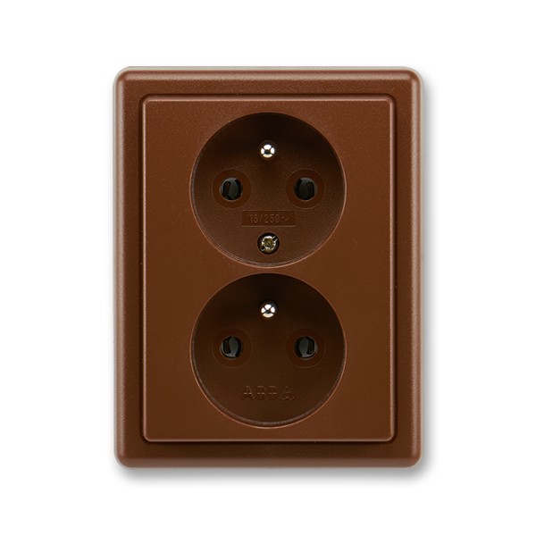 Dvojnásobná zásuvka řady CLASSIC je hnědé barvy, výrobce ABB, určena pro použití v domácnostech, ale i průmyslových objektech. Doporučená montář s elektroinstalační krabicí 68.