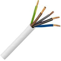 Kabel H05 VV-F 5Gx1,5 CYSY je bílé barvy s 5 vodiči o průměru vodiče 1,5 mm2, s PVC izolací a lanovým vodičem pro pohyblivé uložení.
