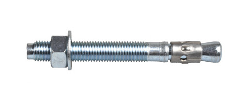 Kotva průvlaková je vhodná do tlačeného betonu (bez trhlin), dvoucestný rozpěrný systém s pojistkou proti otočení, dlouhý závit s podložkou a šestihrannou maticí.
