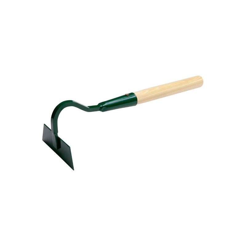 Zahradní okopávací motyčka plochá, nízká, ocelová s dřevěnou násadou, násada 250 mm.