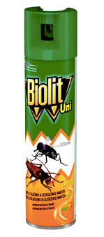 Odpuzovač hmyzu BIOLIT proti lezoucímu a létajícímu hmyzu, insekticid je vysoce účinný sprej proti lezoucímu a létajícímu hmyzu v domácnostech, jako jsou např. mouchy, vosy, sršně a švábi. Účinné látky: 0,125 g 1R-trans-fenothrinu a 0,1 g prallethrinu ve 100 g přípravku. Isobutan, petroleum, benzinová frakce (ropná), hydrogenovaná těžká, propan, 1R-trans-fenothrin, prallethrin.