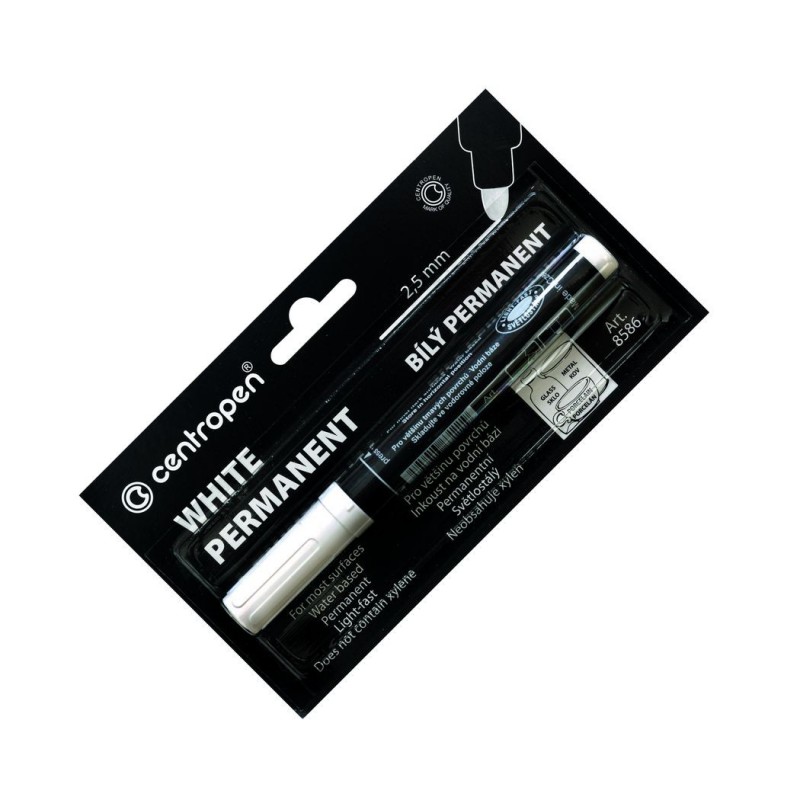 - Popisovač bílý permanentní Centropen 8586, 2,5mm