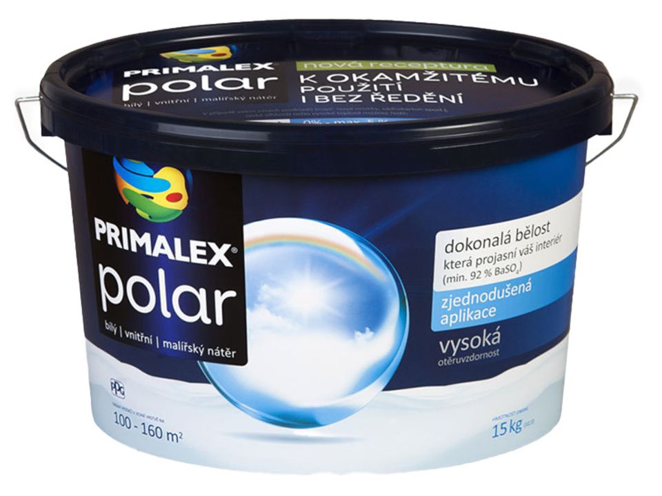 Primalex POLAR Bílý nabízí dokonalou bělost, která projasní váš interiér. Díky pečlivému výběru nejkvalitnějších kalcinovaných vápenců a vysokému podílu titanové běloby můžeme garantovat nejvyšší stupeň „polární“ bělosti (min. 92% BaSO4). S Primalexem POLAR získáte dojem většího a vzdušnějšího prostoru vašeho interiéru. Splní tak i vaše nejnáročnější představy o exkluzivním matném vzhledu vašich stropů a stěn. Nová receptura zjednodušuje aplikaci a pomůže vám dosáhnout dokonalého výsledku.