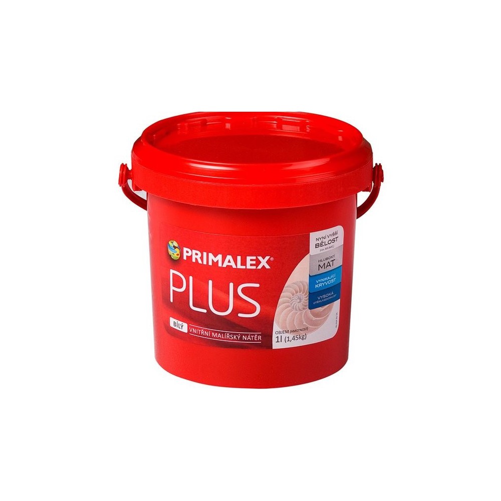 Primalex Plus Bílý je nejprodávanější a nejoblíbenější produkt značky Primalex v oblasti vnitřních malířských nátěrů. Současná receptura zachovává osvědčené vlastnosti – výbornou kryvost a vysokou otěruvzdornost a zároveň garantuje jeho vyšší bělost (min. 86% BaSO4) a hluboce matný konečný vzhled produktu. Doporučujeme aplikaci ve dvou vrstvách.