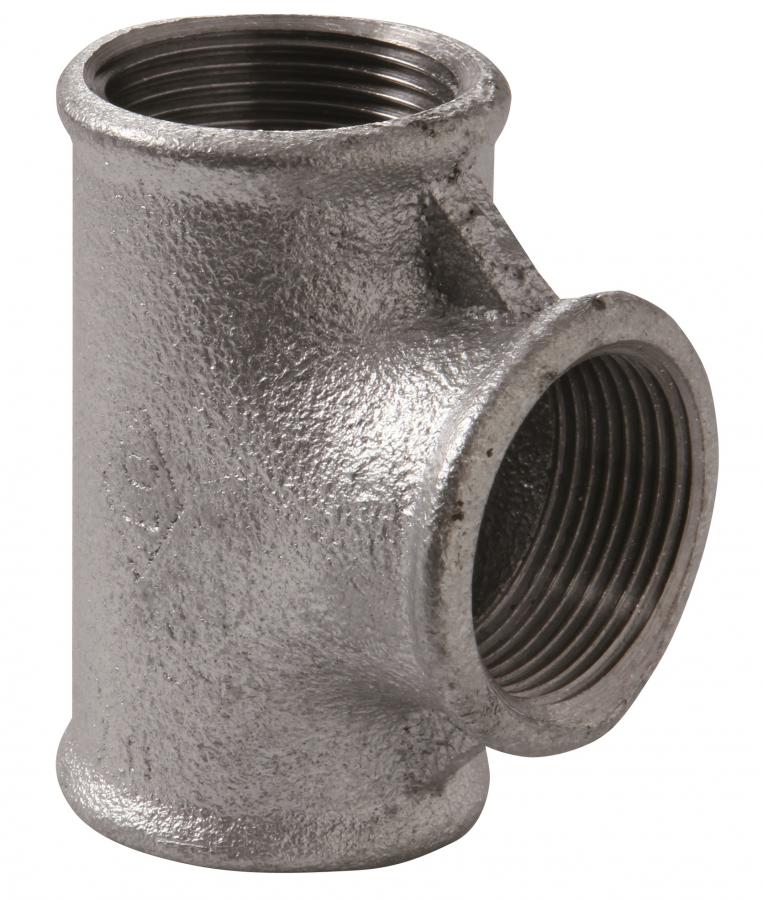 T-kus pro rozbočení potrubí do dvou směrů. Pevný závitový spoj. Tvarovka z tvárné bíle žíhané litiny značky ATUSA s povrchovou úpravou zinkováním podle normy EN 10242:1994.