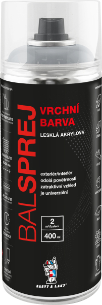 BALSPREJ je univerzální lesklá vrchní barva ve spreji použitelná k nátěrům dřeva, kovu, karoserií, některých umělých hmot. Vyniká vydatností, je rychleschnoucí, po nástřiku nestéká. Je odolná proti povětrnostním vlivům a korozi. Je přestříkatelná Bezbarvým akrylovým lakem ve spreji.