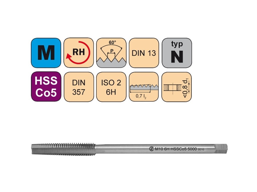 - Závitník maticový M5x0,8 ISO2 HSSCo5 DIN 357 - 5000