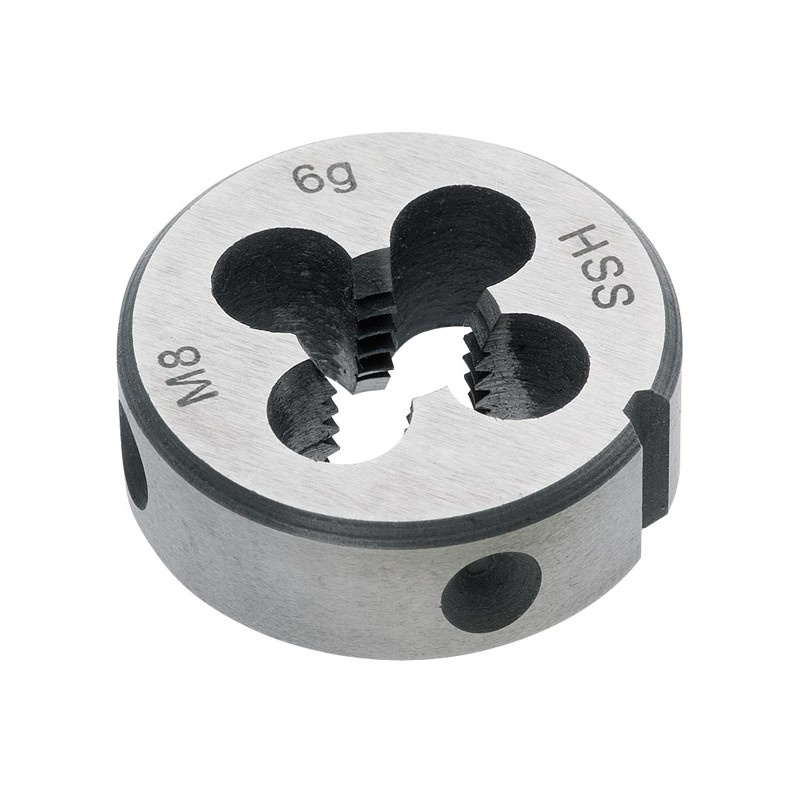 Závitová čelist kruhová, velikost M5, materiál HSS M2 (výkonná rychlořezná ocel), metrický závit.