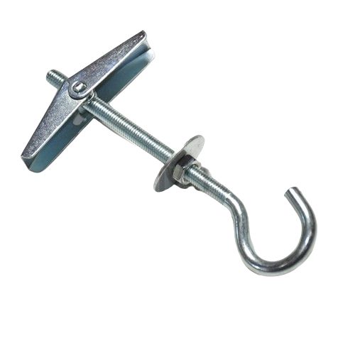 Zvláštností kotvy s háčkem je, že má metrický závit a sklopné přídržné křídla s pružinovým mechanismem.