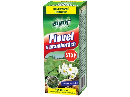 AGRO Plevel v bramborách STOP je účinný selektivní systémový herbicid určený k hubení plevelů v bramborách. Přípravek působí na dvouděložné plevele jednoleté (merlík, heřmánkovité, pletka, kokoška pastuší tobolka, lilek, svízel, violky, rdesno) a plevel ježatka kuří noha.