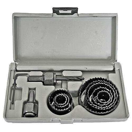 - 8 ks vykružovač děr: 19 mm, 22 mm, 29 mm, 32 mm, 38 mm, 44 mm, 51 mm, 64 mm