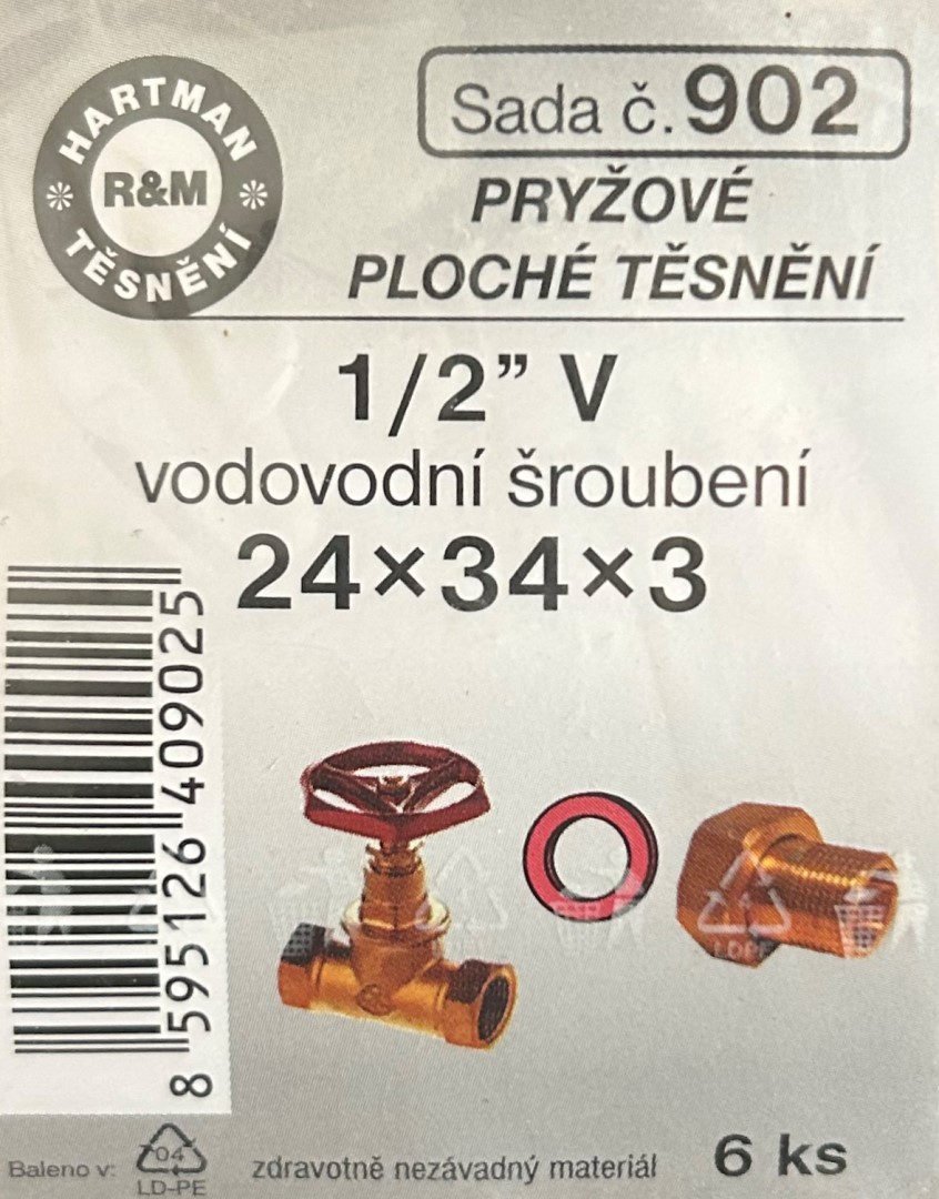 - Těsnění pryž. Hartman sada 1/2" V - 24x34x3, sada č. 902